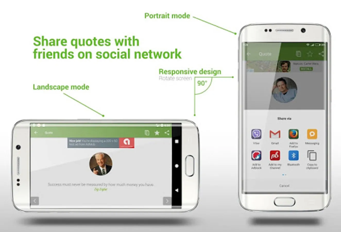 App supporting landcape and portrain modes. Easily share best quotes with your friends.