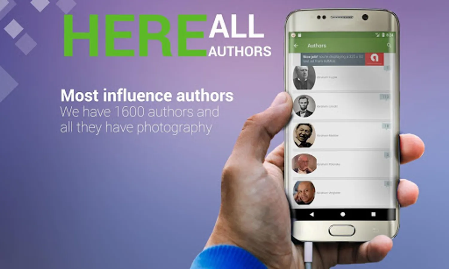 You can find your favorite author using search system. Also you can find settings, saved favorites and daily quote.