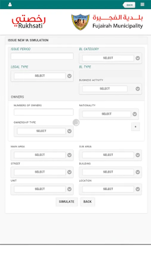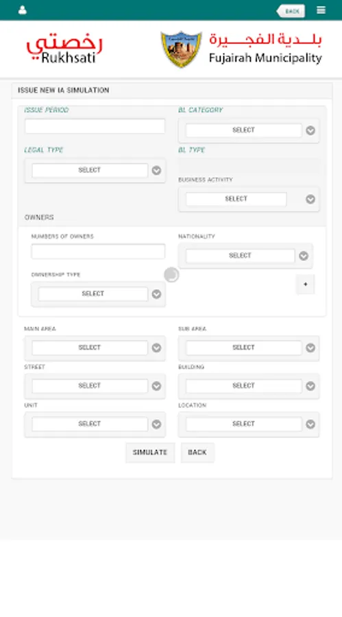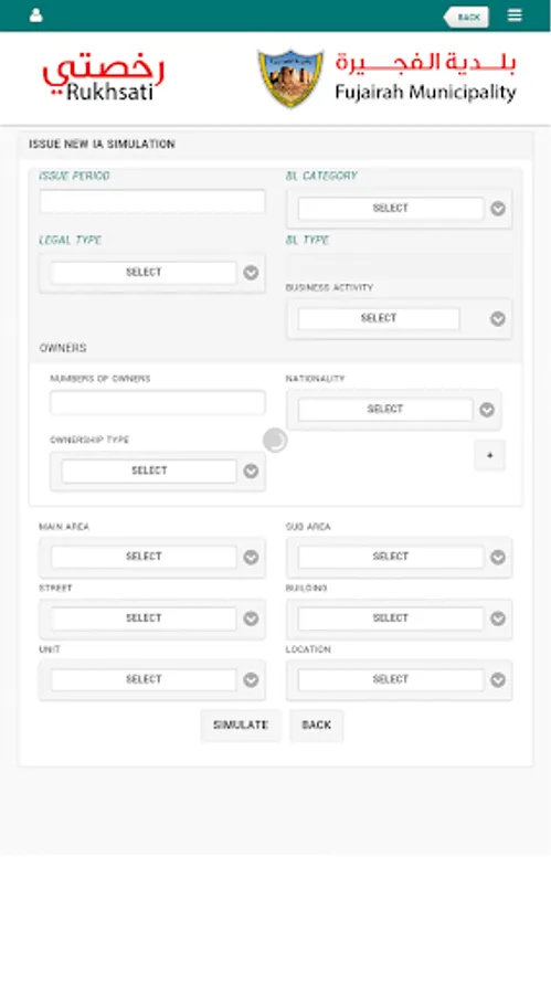 Its a Commercial License application for Fujairah Municipality and have following features