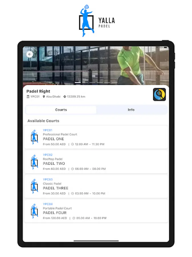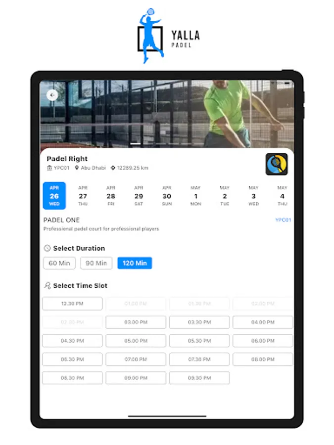 Yallapadel is padel ground booking application. User can find nearby padel grounds and book their slots. User can pay 25% of court rent during booking and they can pay remaining payment to court directly.