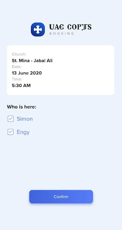 This application is to help servants of "Holy Liturgy Booking" service to scan and inboard the attendance for each booking.