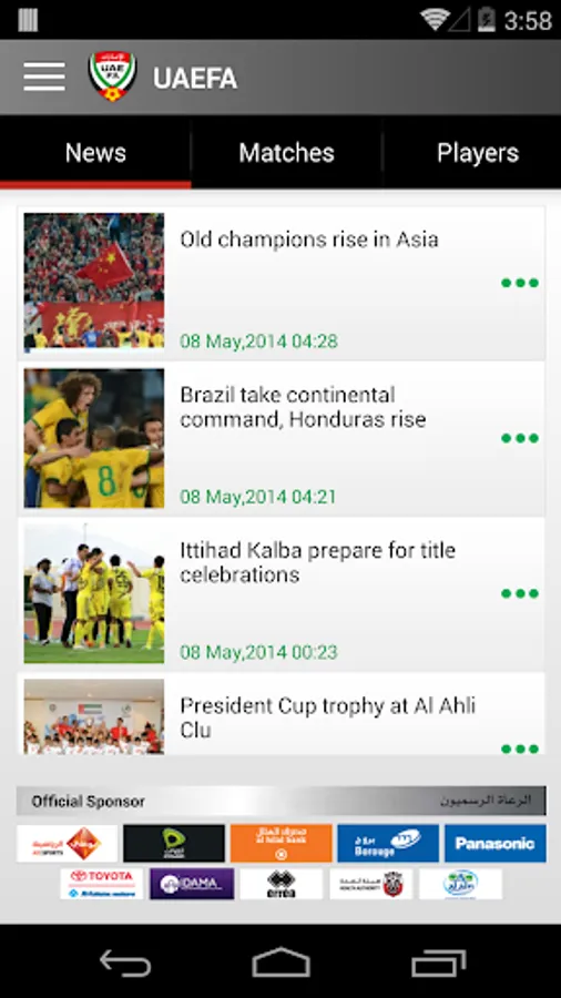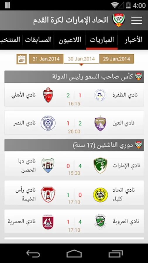 The Application provides several services related to all activities organized by UAEFA such as daily news, information & statistics about the local competitions and National Teams in both Arabic and English languages.