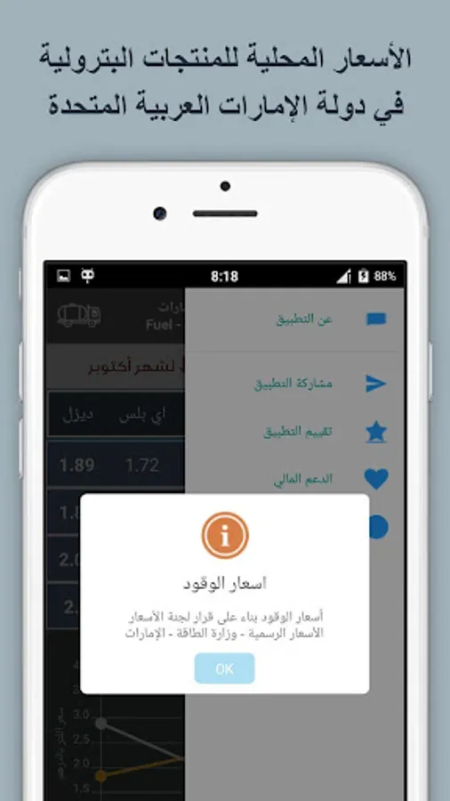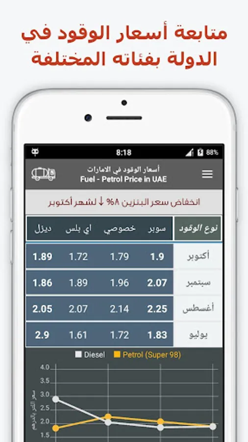 ابق على اطلاع بآخر المستجدات بخصوص اسعار الوقود في دولة الامارات من خلال خدمة الاشعارات وتابع اسعار الوقود في الدولة بفئاته المختلفة ( سوبر - بنزين 98 – بنزين 95 – بنزين بلس 91 – وقود ديزل )