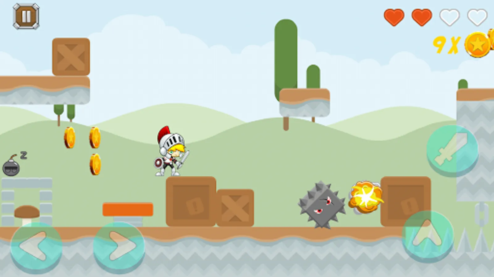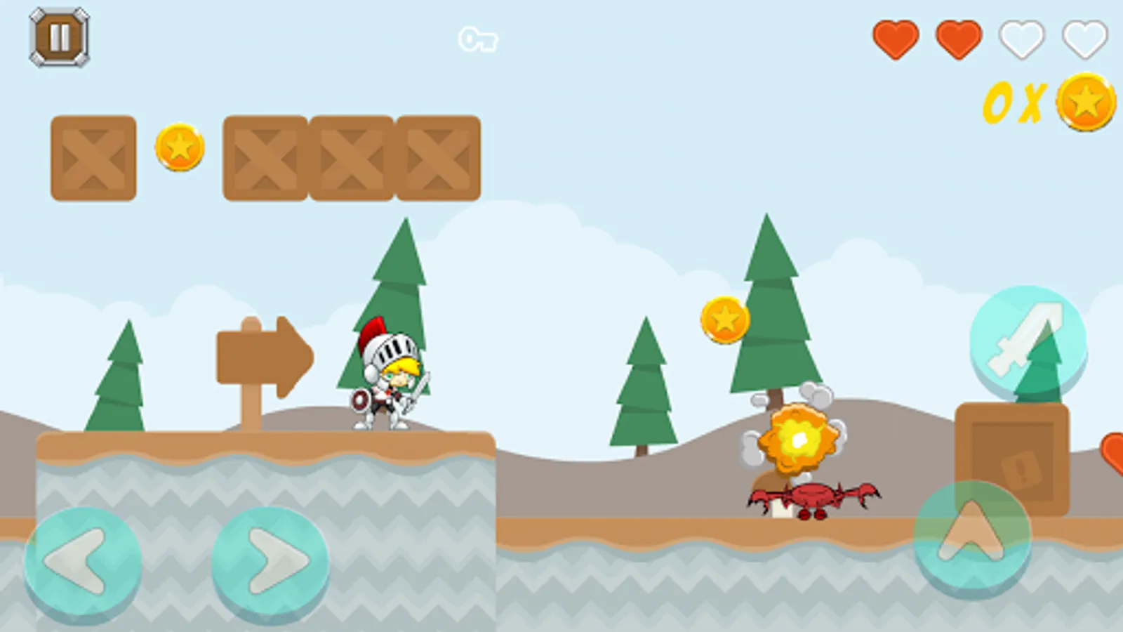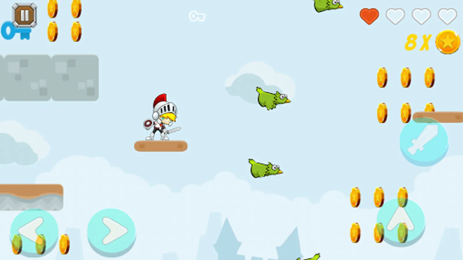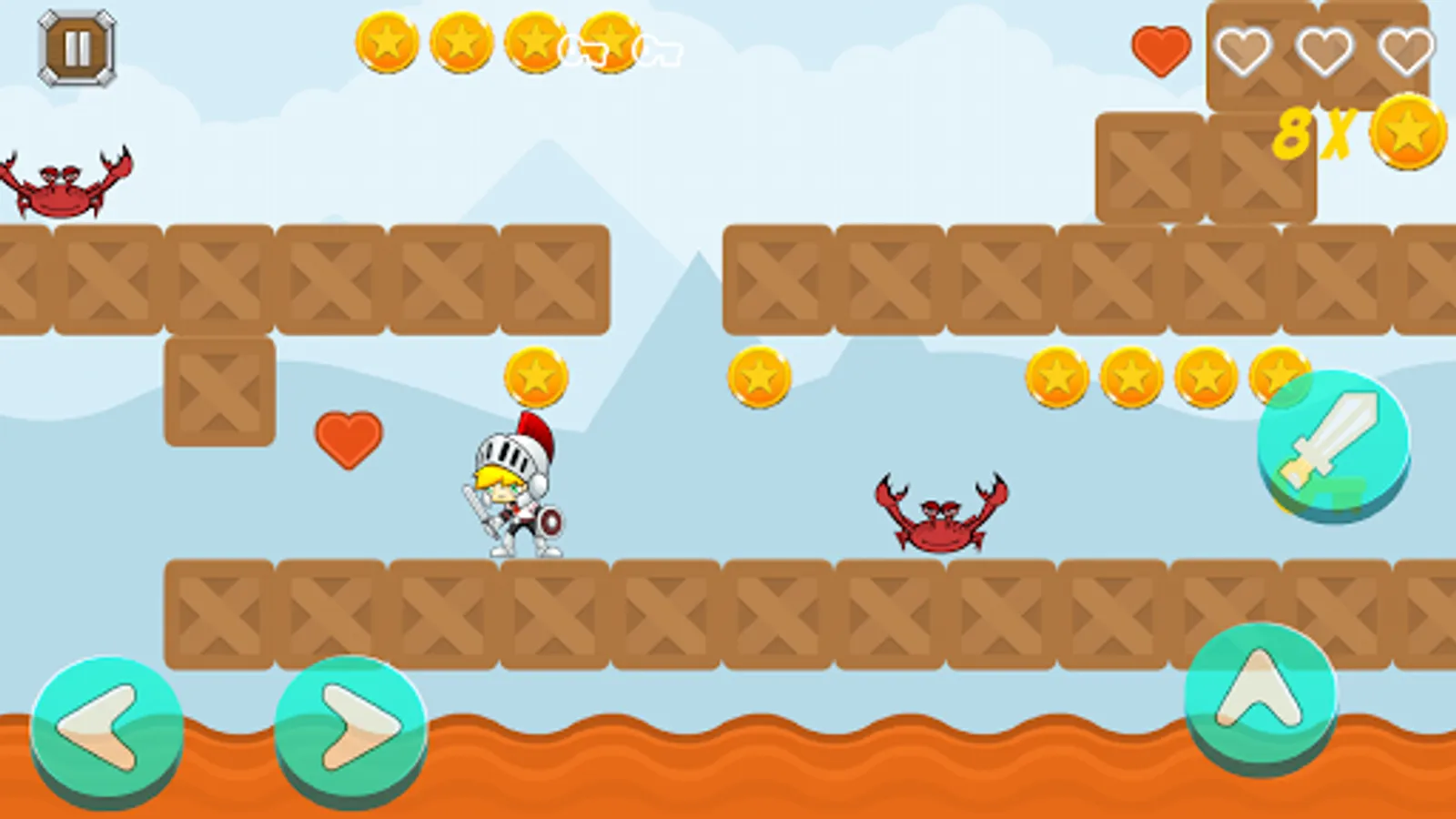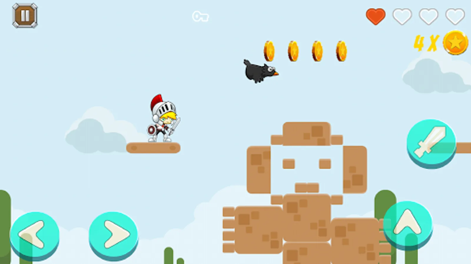 Prince Kevin, brave and strong hero. He needs to go over all the obstructions, to finally win. On Kevin's way, you will meet different enemies trying to discourage you. The usual level enemies will be wild rats, birds, crabs, and other monsters. At the end of each decade, you will fight with the strong enemy - Boss from Orc world. Go over the adventure and win the game! Small and dynamic levels will have the secrets you need to find to complete the stage. Fight with enemies, collect coins,, and find the treasure to get the highest award. Get fun and go ahead! The free platformer game is waiting for you!