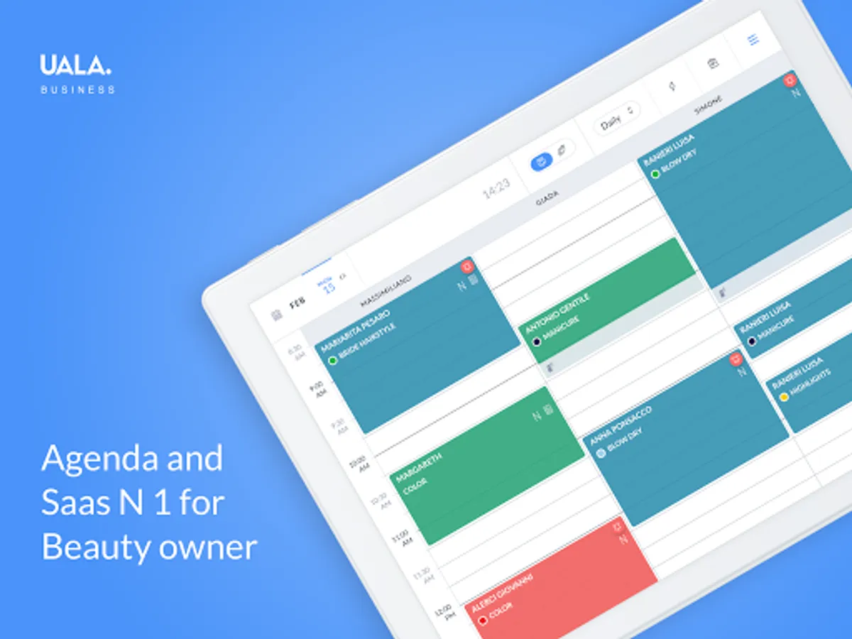 Uala provides a complete salon assistant thanks to a 360 ° service consisting of software developed specifically for dedicated hardware. The salon therefore has all its data saved in the cloud and updated in real time to allow customers to make an online reservation.