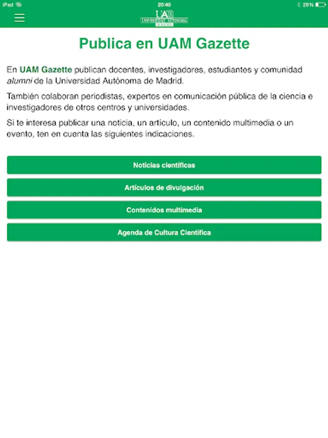 UAM Gazette is an initiative for the social appropriation of knowledge generated by the Autonomous University of Madrid and associated centers.