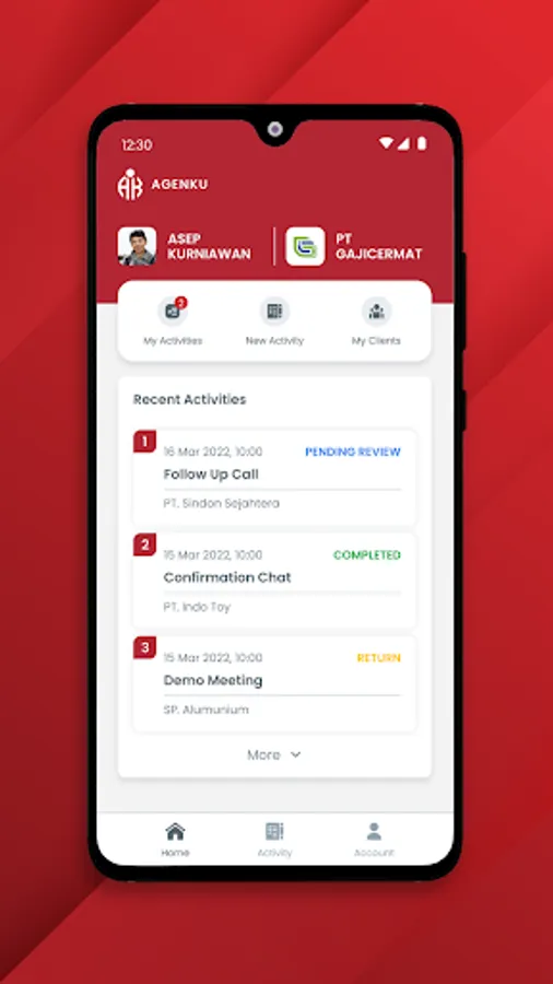 This sales management application will boost efficiency in your business by advancing your task / activity management system. To achieve effective employee management, AgenKu will ensure employee tasks are always up to date with progress detail, real-time reporting, fast coordination, and integrated client management. AgenKu features will improve your operational efficiency, increase sales/agent accountability, and enhance your team performances. Managing your team and tasks has never been this easy!