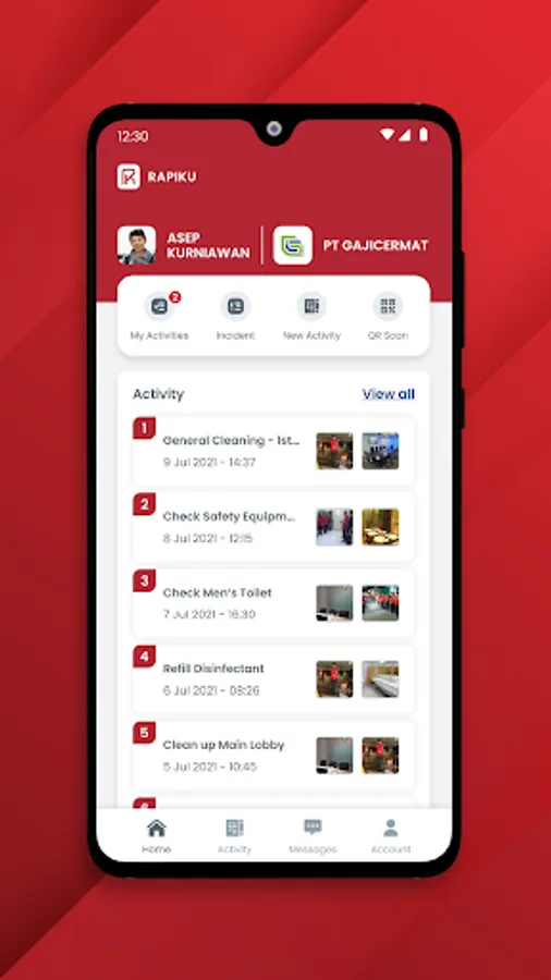 RapiKu is a comprehensive solution designed to support cleaning service workforces. Integrated with many features of GajiCermat HRIS application, RapiKu’s system enables effective monitoring and management of activities' documentation.