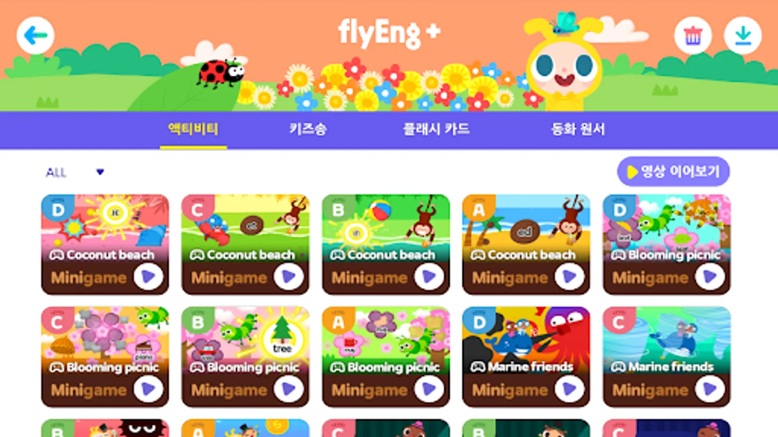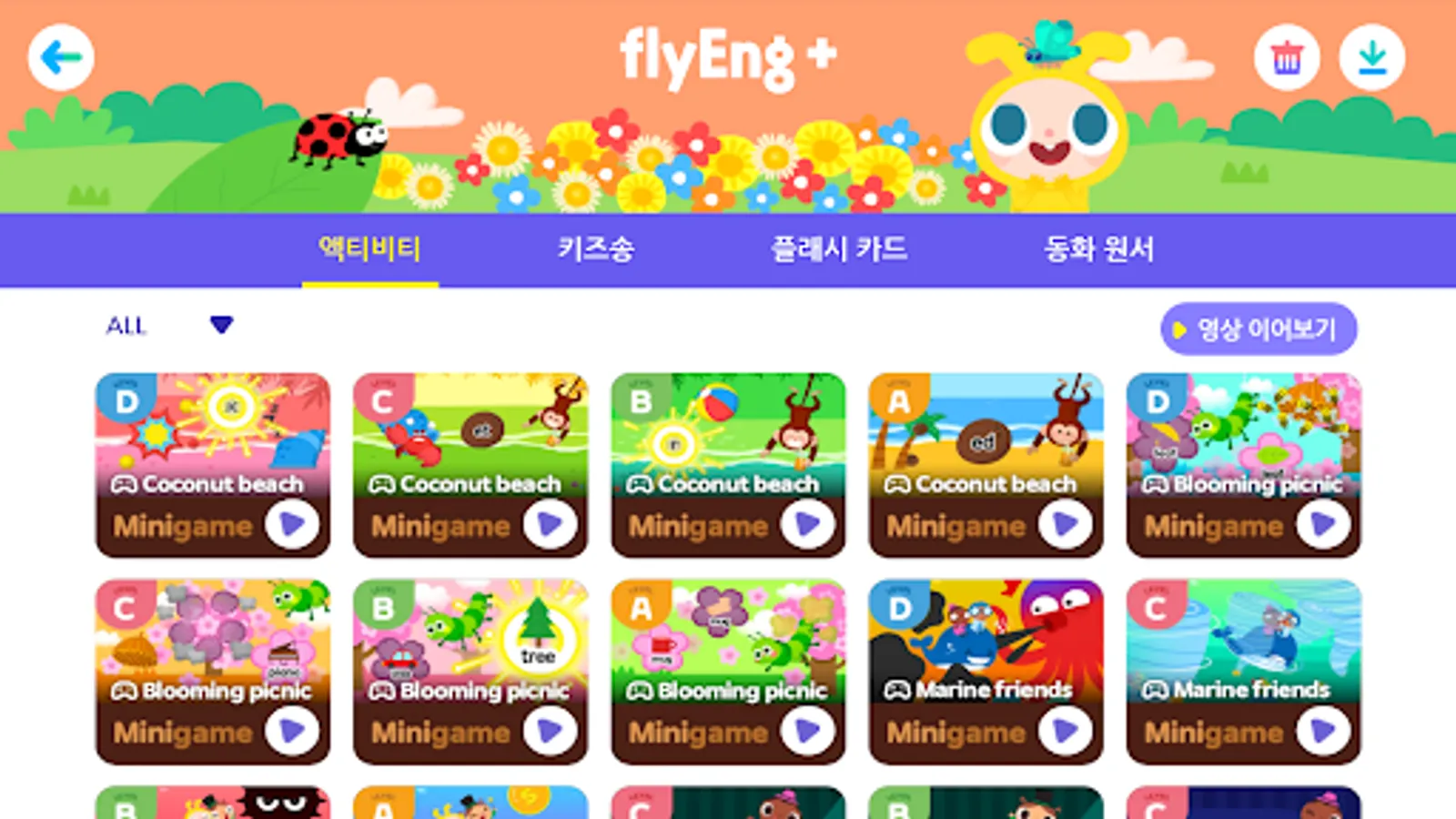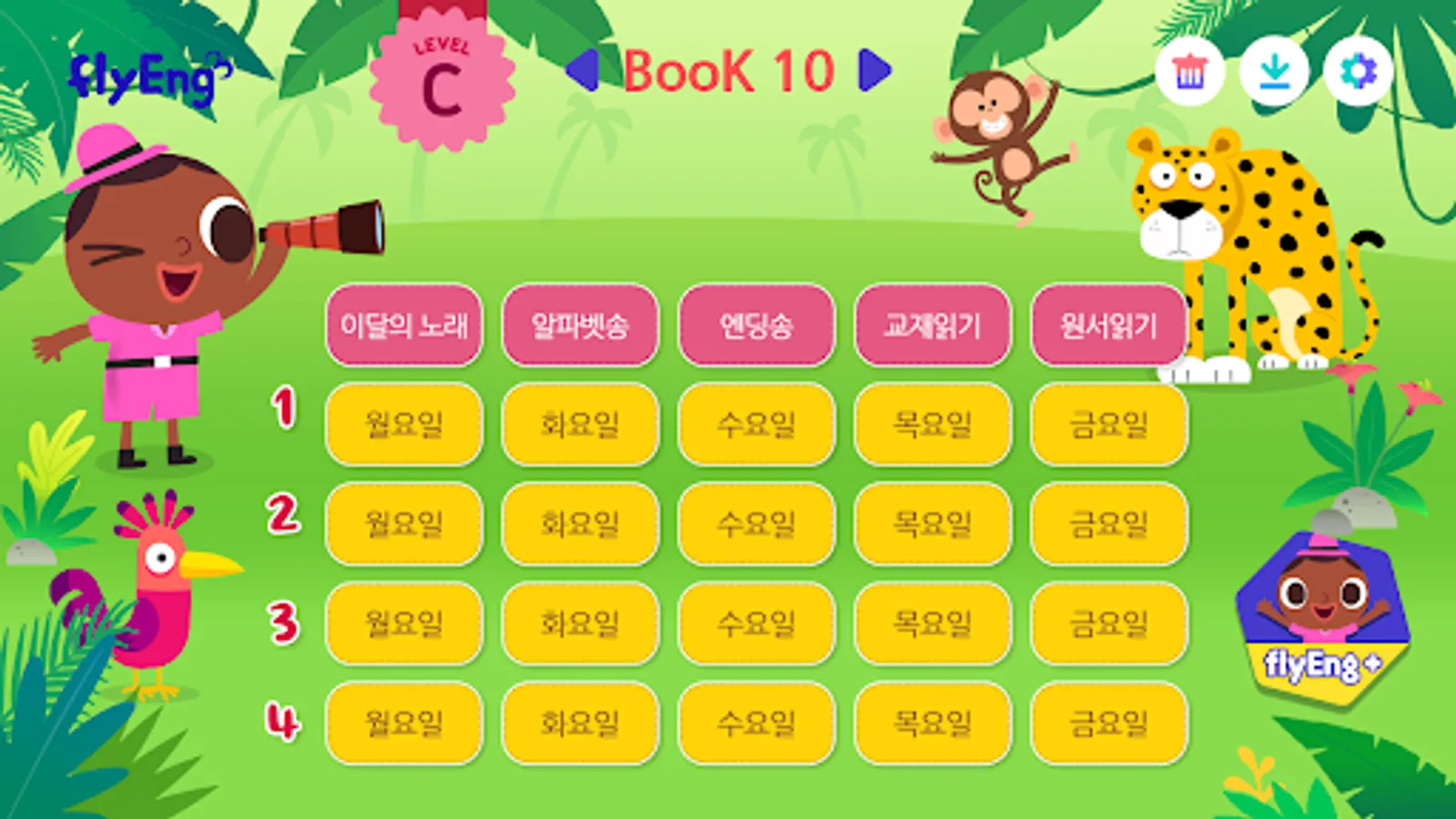 20 videos tailored to each level and 3 videos of English children's songs are provided every month.