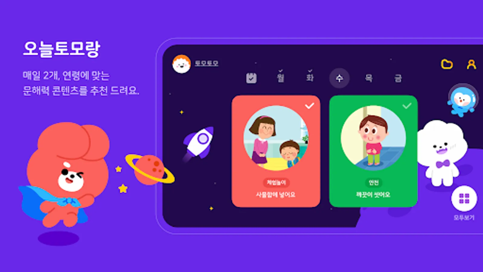 We select and provide two contents daily tailored to the age of children aged 3, 4, and 5 years old.
