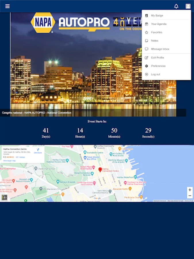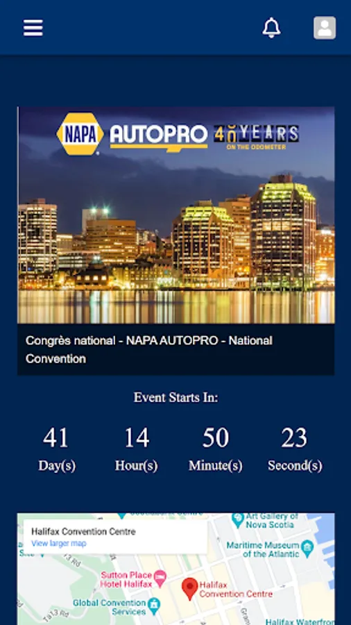 To ensure that you have the best possible experience during the 2023 NAPA AUTOPRO National Convention, take a few minutes to download the NAPA Halifax mobile app on your device. It’ll give you access to all the information you’ll need to get the most out of the convention. Key Features - Access the detailed agenda - Get to know our featured speakers - Receive up-to-the-minute notifications - Get around easily using the maps - Reach the NAPA team members - Communicate with other participants. *** Pour vous assurer de vivre la meilleure expérience possible pendant le Congrès national 2023 de NAPA AUTOPRO, prenez quelques minutes pour télécharger l’application de NAPA Halifax sur votre téléphone. Elle vous donnera accès à toutes les informations nécessaires pour tirer le maximum du congrès. Principales fonctionnalités - Consulter l’horaire détaillé - Faire connaissance avec nos conférenciers - Recevoir des notifications en temps réel - Circuler facilement grâce aux cartes - Contacter les membres de l’équipe NAPA - Communiquer avec les autres participants.