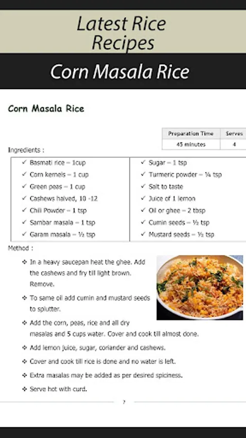 All rice recipes are presented with simple and detailed instructions and photo.
