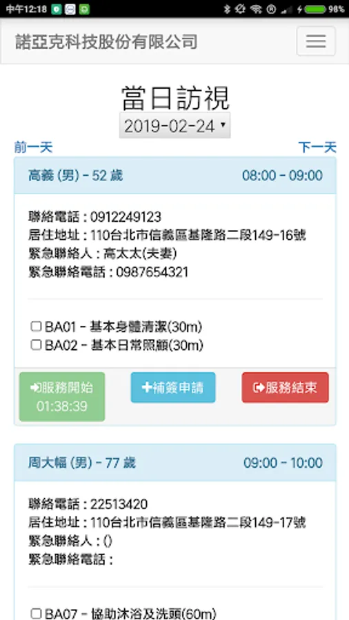 This app is provided to the customers of Noah's uCare Longzhao Information Management System Home Service Unit. The staff can view the shift record, check in the service, check the service item and sign the refund after the service. For the verification operation, more functions will be added one after another.
