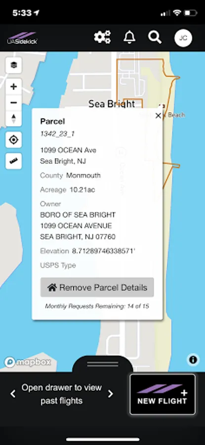 UASidekick has incorporated the feature for parcel data look up which allows the user to select a parcel of land and have the boundary and ownership displayed. Each subscription comes with 15 lookups that renews each month. This feature along with our mapping resource is designed to provide the pilot with situational information not only in the air but on the ground.