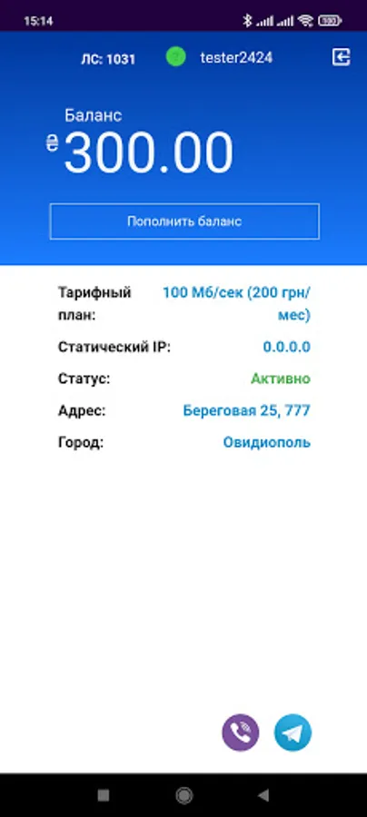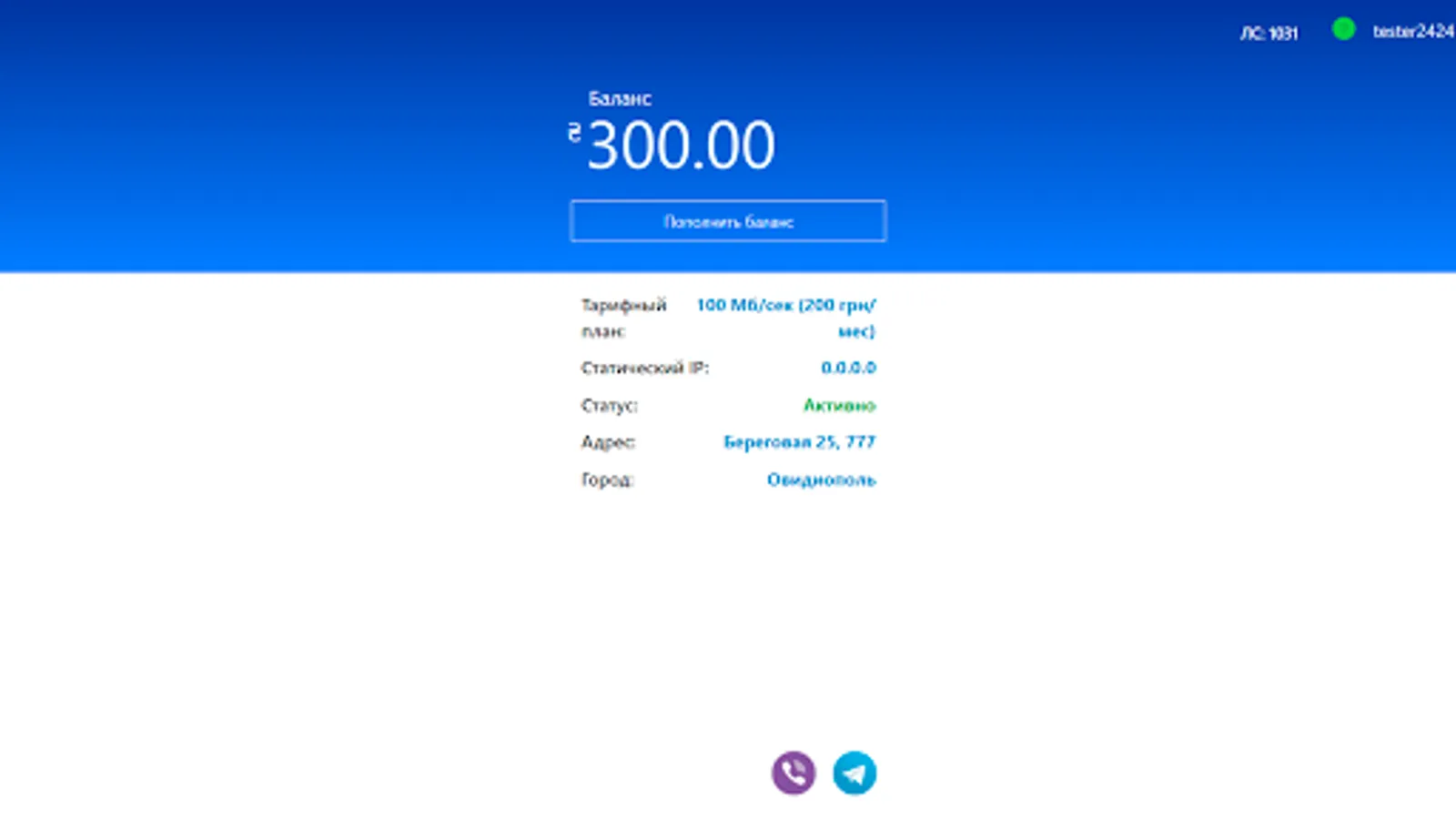 Existing ones can see all the data about the service, contact technical support and top up the balance.
