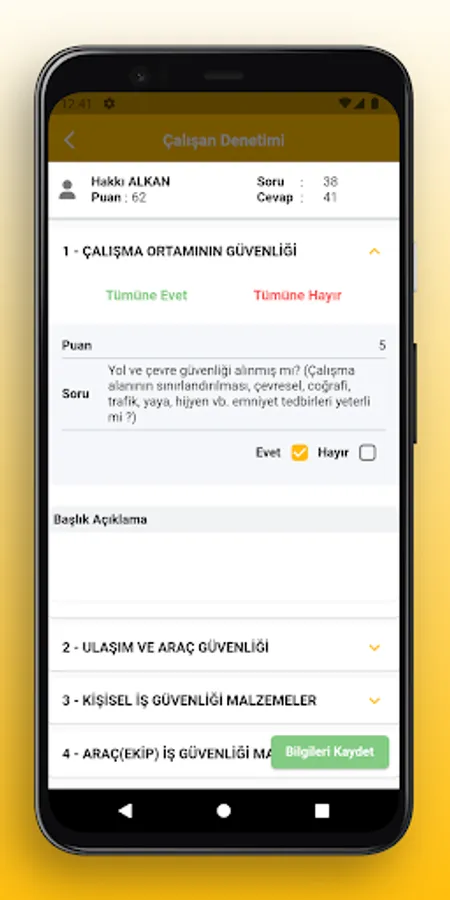 - Work accident notifications, PPE requests, near miss notifications and regulatory and remedial action (DIF) notification for employees.