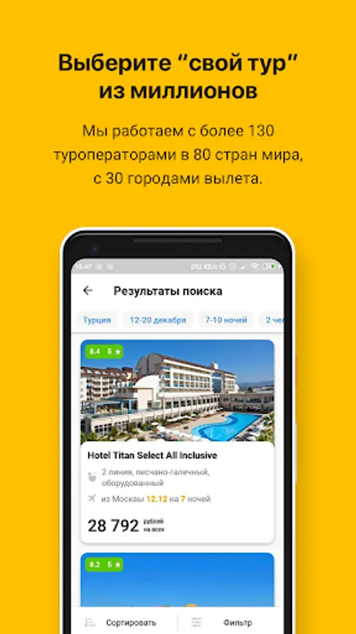 With us, preparing for a vacation is pure pleasure! Millions of tours to 80 countries - in a convenient search system.