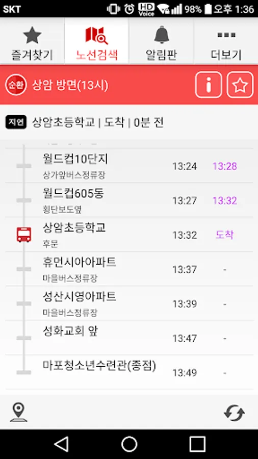 Every time a bus approaches, arrives, or departs from a stop, it is checked and notified. You can see at a glance the time the bus departed from previous stops, and you can predict when the bus will arrive at the stop you are waiting for.