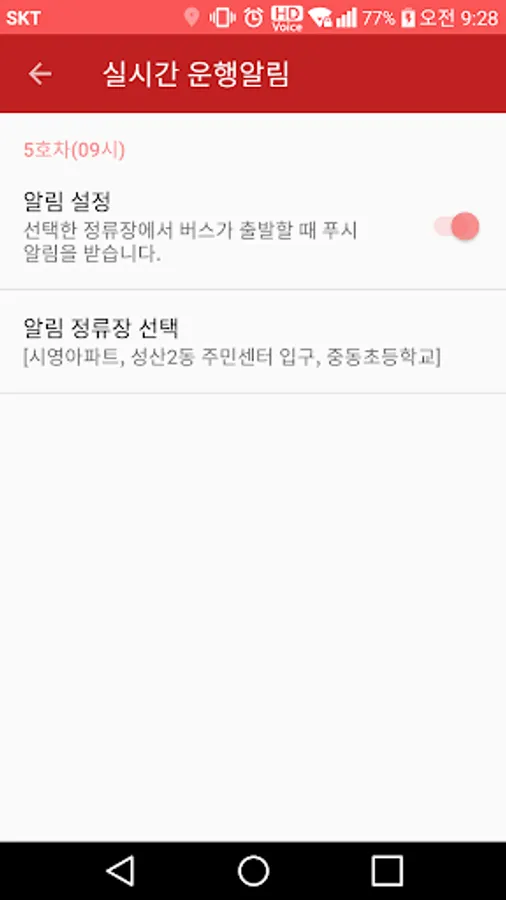 Location: Permission to display the current location and stop of the bus with Daum/Kakao Map.
