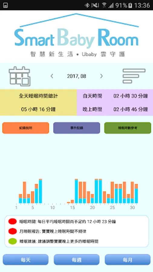 Infants spend more than 12-16 hours a day sleeping due to higher levels of growth hormone. UbabyCloud can report sleep time and quality. You can also improve baby’s sleep quality by streaming a lullaby or mother’s sounds through a micro-speaker in the mat.