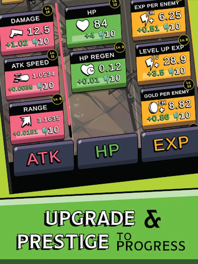 Never fear! Upgrade your hero Grimy Rick to shoot faster, harder, stronger, and annihilate any zombies hunting for brains.