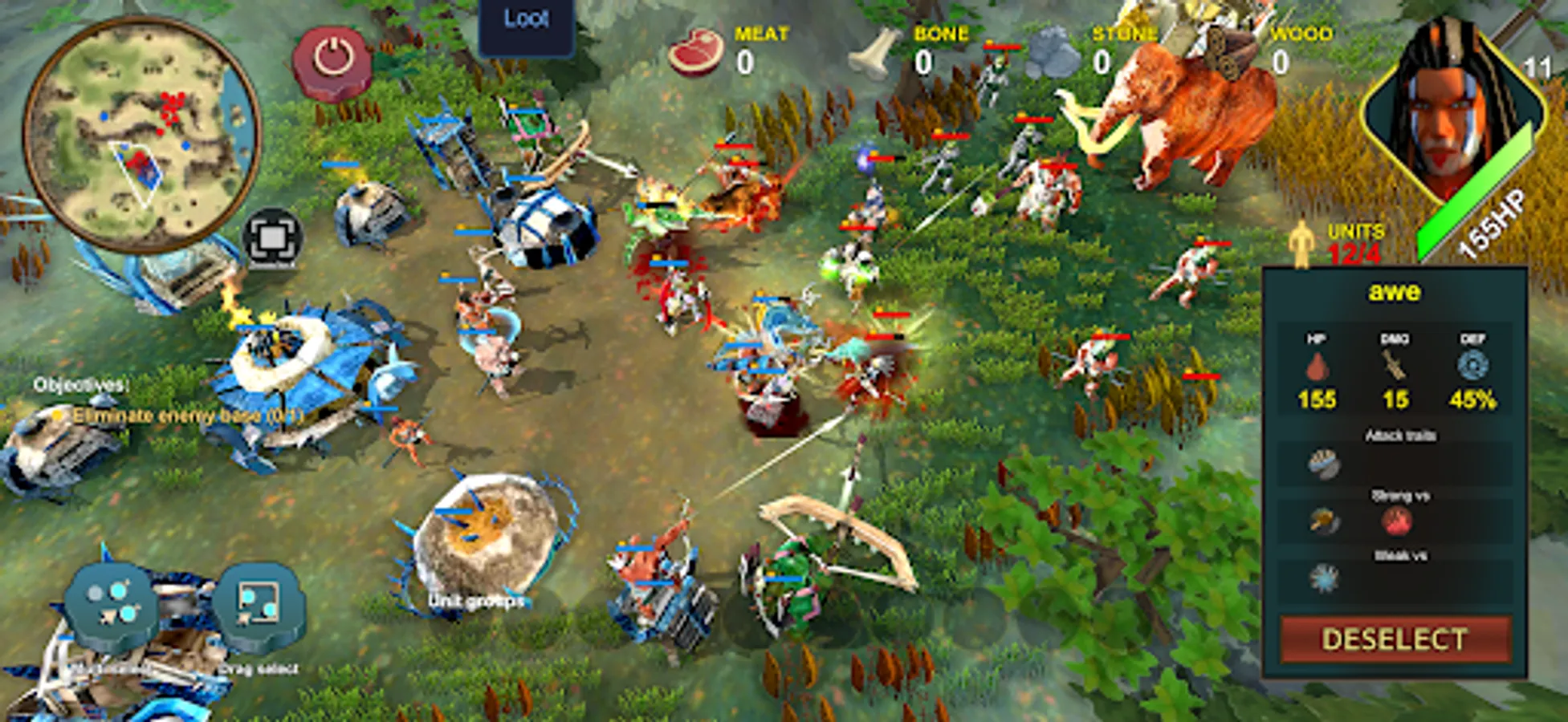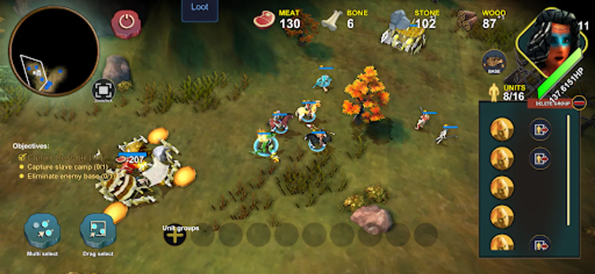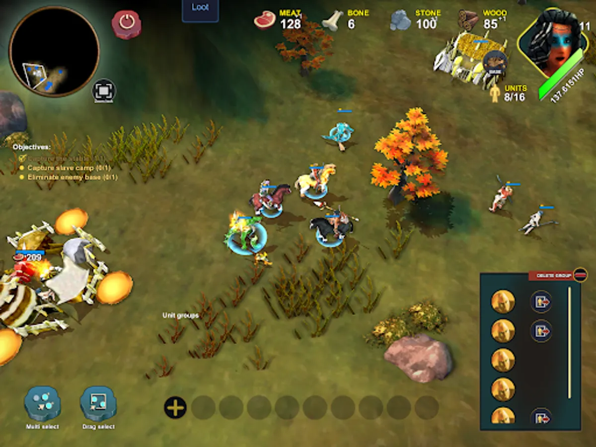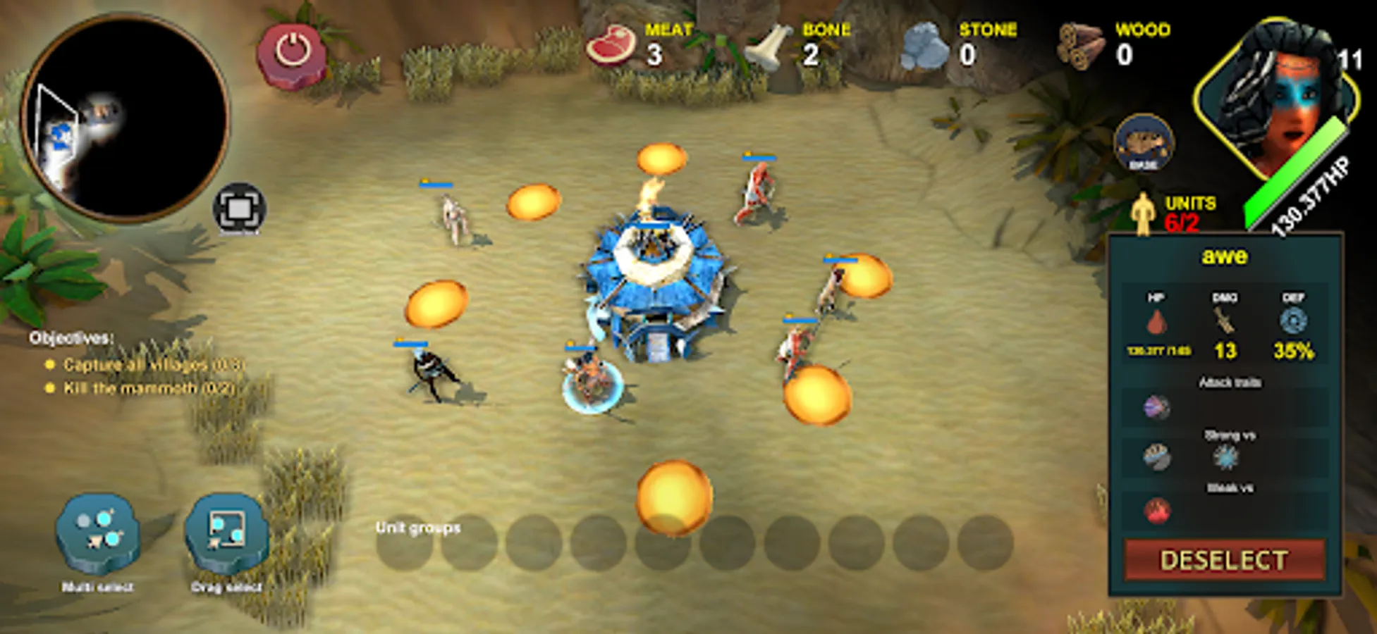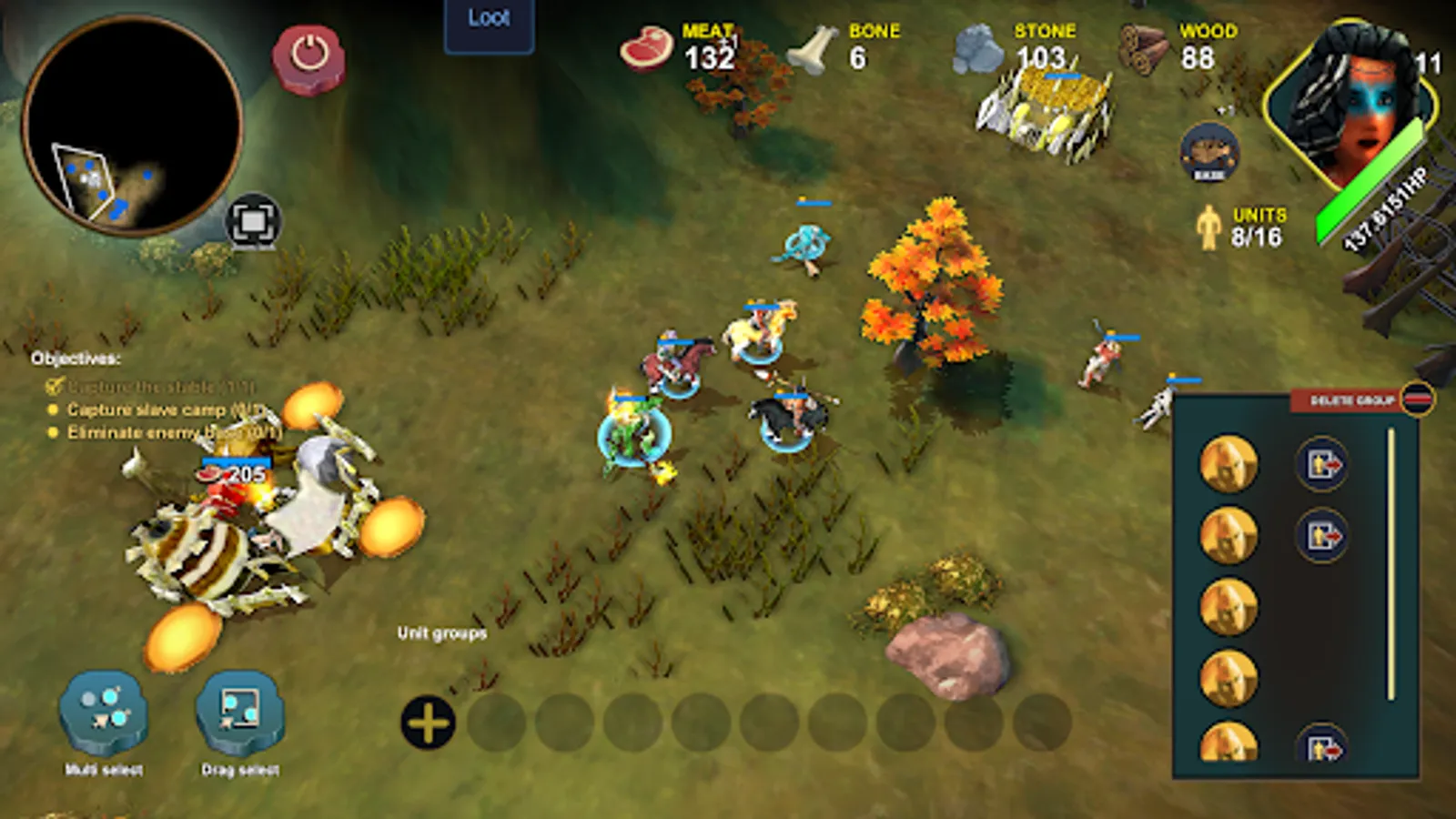 The game also provides full control over camera rotation, zoom and pan and includes multiple unit selection using both tap or drag gestures. Use the group selection feature to create groups of warrior units, ensuring you deliver your best strategy at all times.
