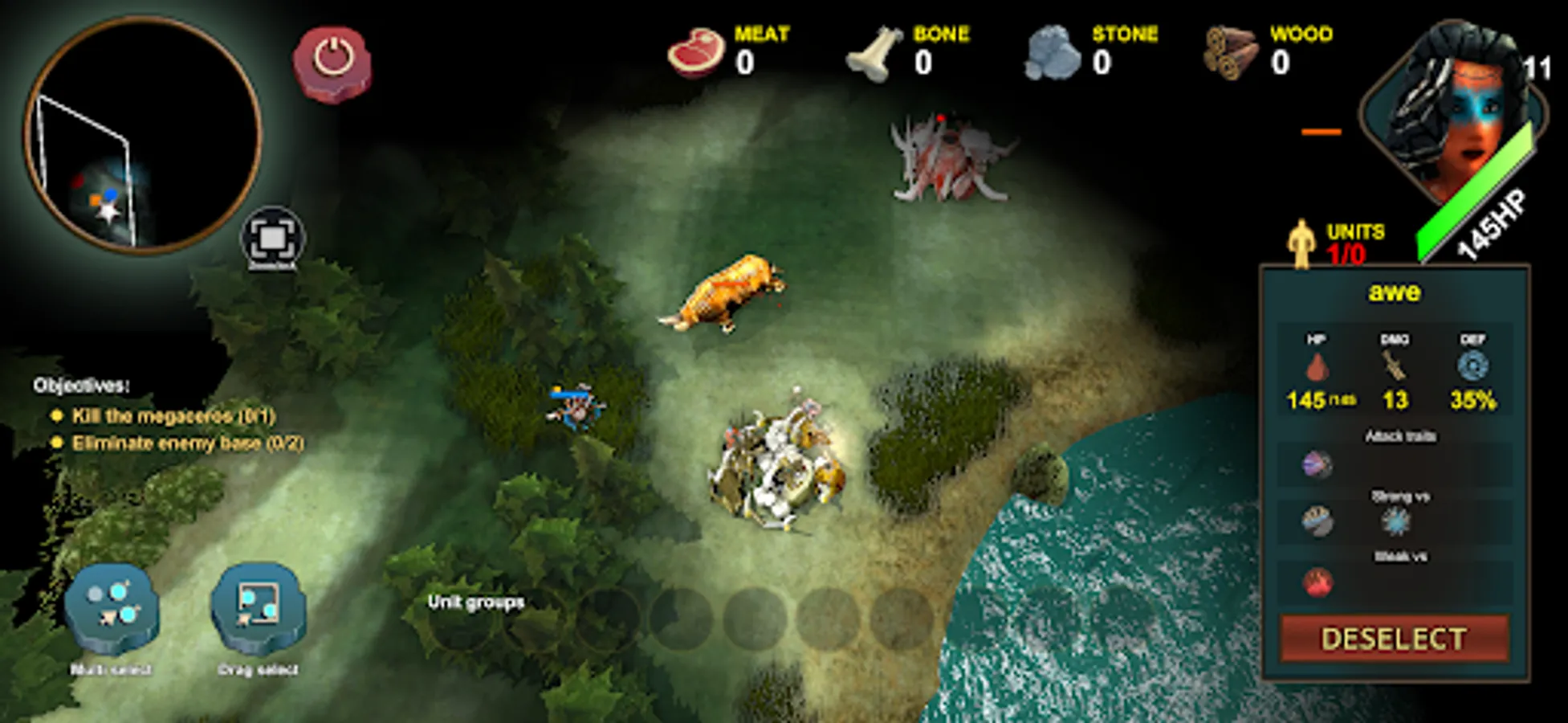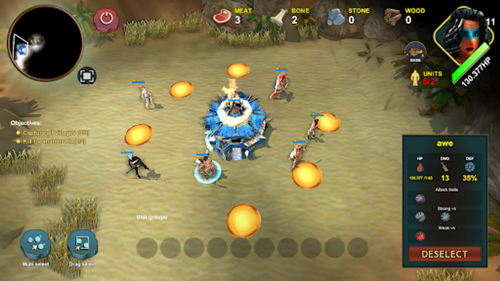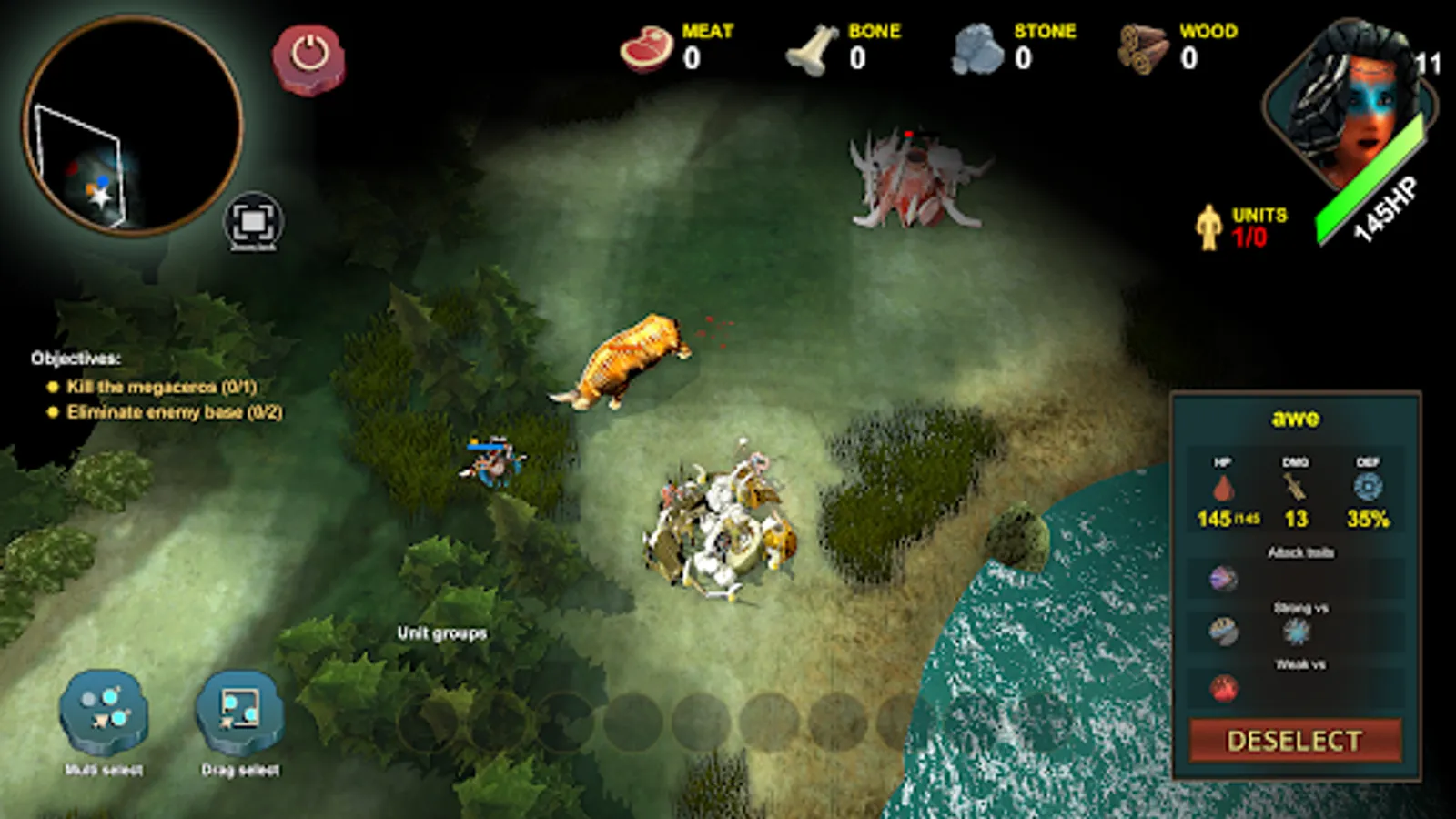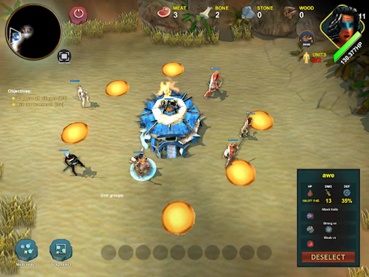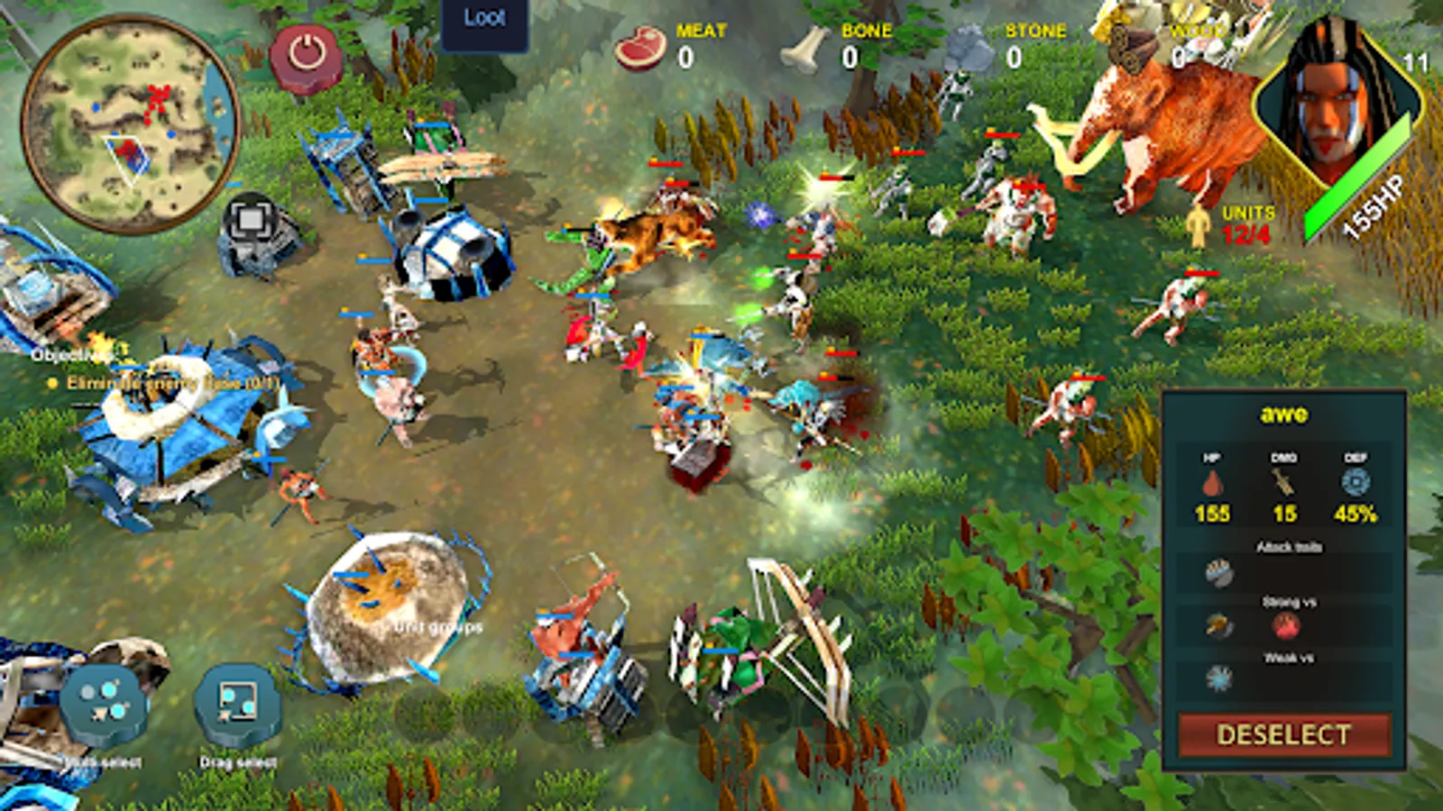 The game also provides full control over camera rotation, zoom and pan and includes multiple unit selection using both tap or drag gestures. Use the group selection feature to create groups of warrior units, ensuring you deliver your best strategy at all times.