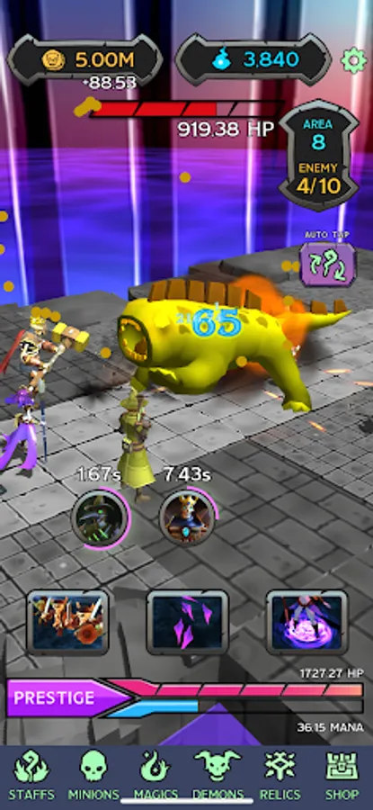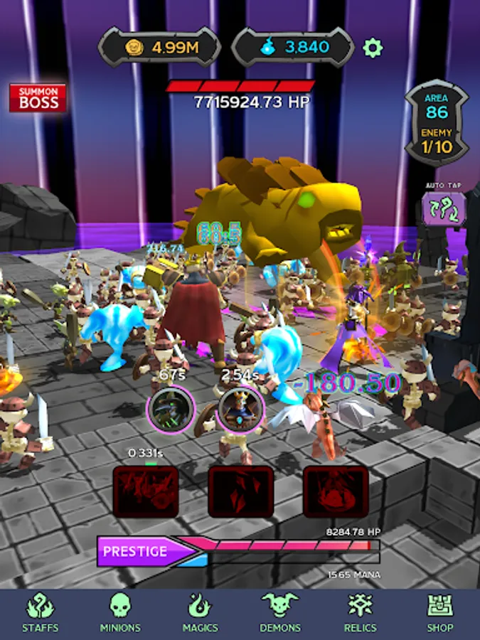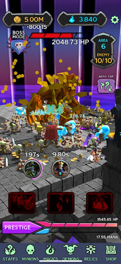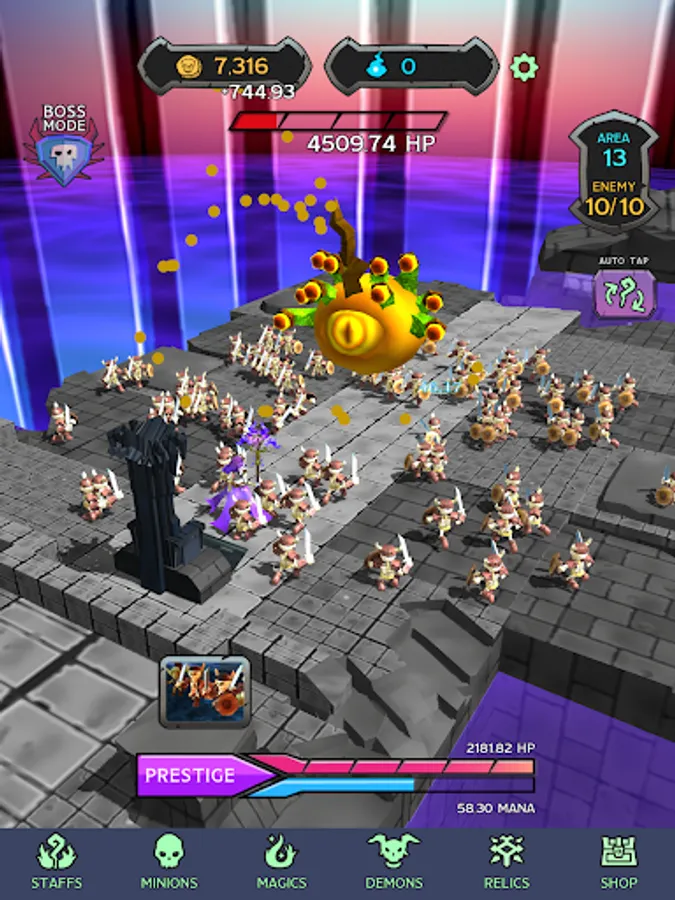 Employ the help of powerful demons and use the prestige spell to earn souls, upgrade relics and unlock your necromancers ability to move on to bigger bosses.