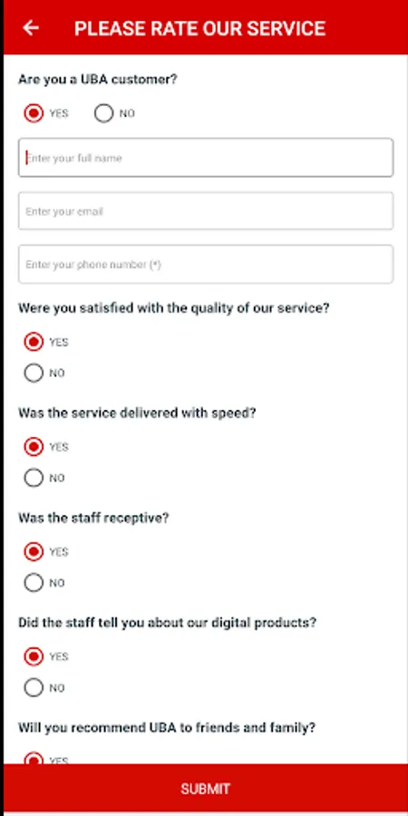 The Customer Feedback Solution is an application that allows customers to rate the services of a UBA group Affiliate at the branch level after being served.