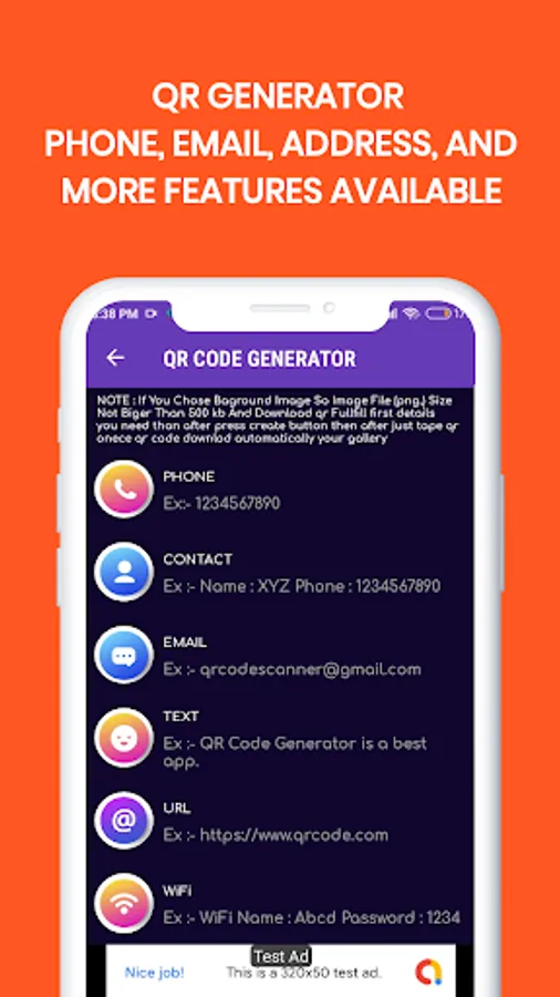 - QR code generator allow you to encrypt personal information, create codes for messages, wifi, phone numbers, location, text and and more