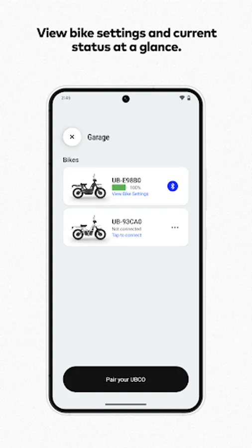 • Supports UBCO bike models from 2018 onwards.