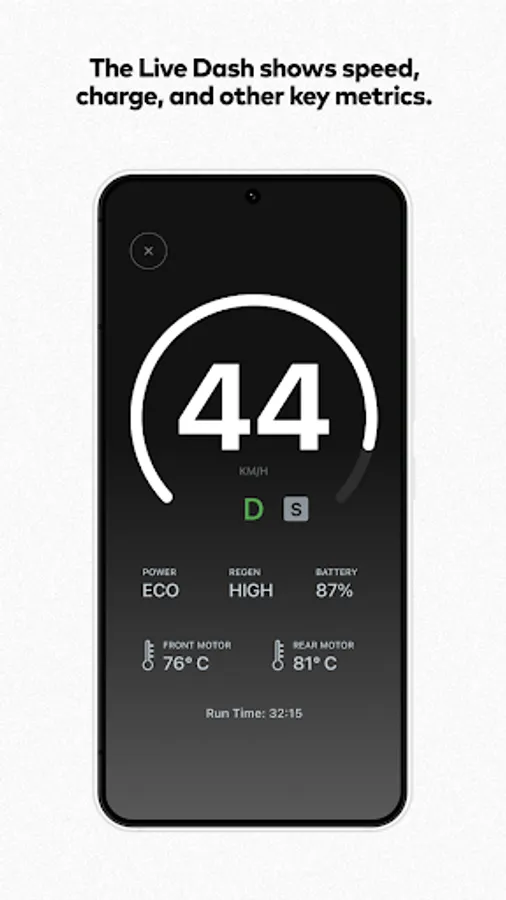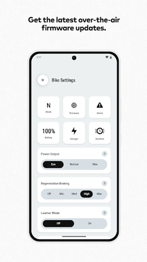 • Quick and easy Settings. Pick you preferred Power and Regenerative Braking level.