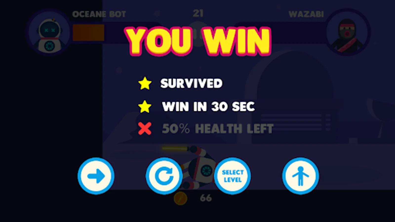• Win : Blood of the enemy equals 0 and the fight time is greater than zero.