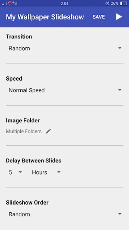 All you have to do is to put all your favourite pictures into a single folder and select the path of this folder from within this application. Select a few settings of your choice, save the same from within the app and you are ready to go.