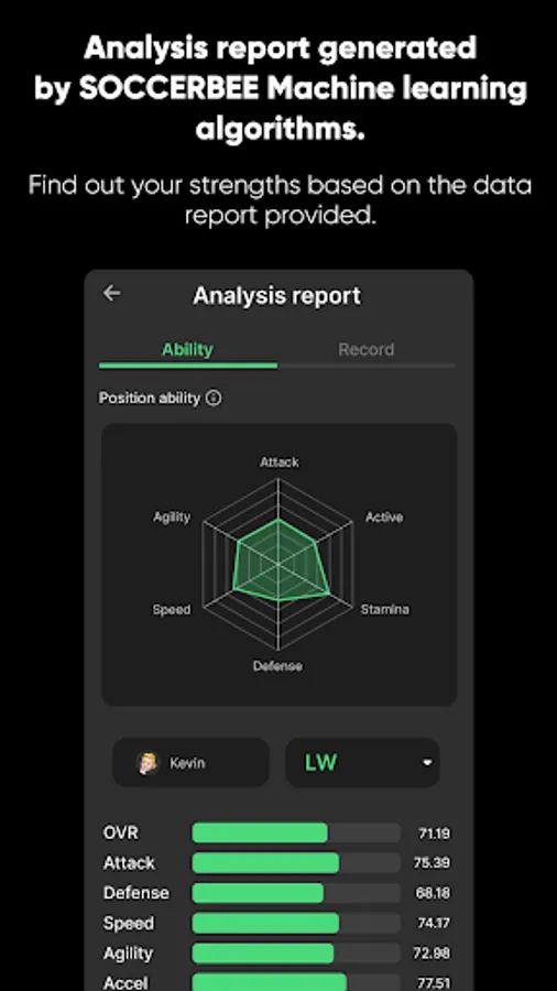 - Check your improvement with analysis and trend graphs generated by SOCCERBEE machine learning algorithms!