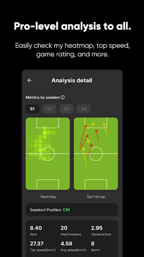 - Distance covered, top speed, number of sprints, heat maps, and more are available right after the game.