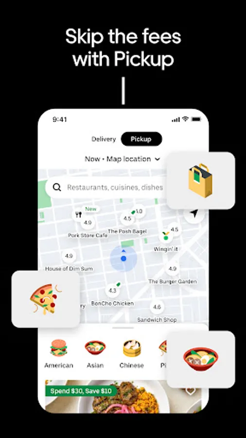 Now you can also order food ahead for Pickup instead of just ordering delivery. Select Pickup, add food items to your cart, and skip the lines to the restaurant to get your food.