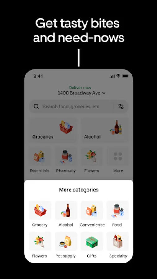 Order household needs from your favorite drug stores, supermarkets, and pet shops. Baby food or diapers, pharmacy needs, beauty products and cosmetics. Grocery staples like bread and milk, bananas and produce, flowers and plants, packaged foods or frozen treats.
