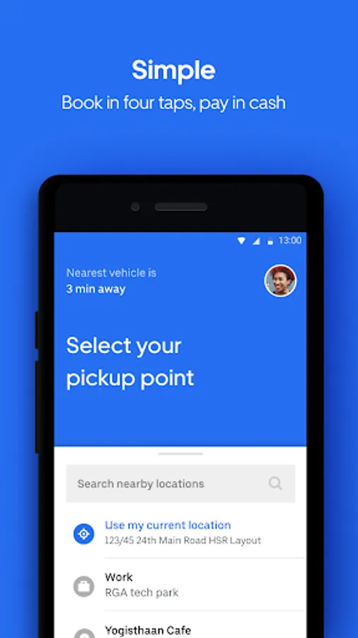 It’s simple to learn and use. Call an Uber in 4 taps, with little or no typing, and pay in cash