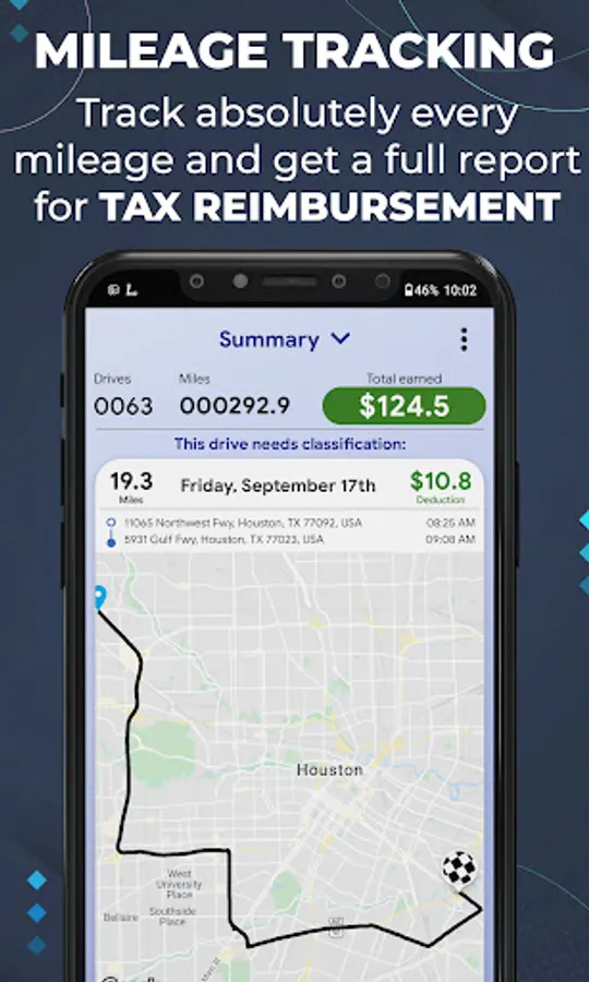 - Mileage Tracking: track absolutely every mileage, classify them and get a full report for IRS tax reimbursement.