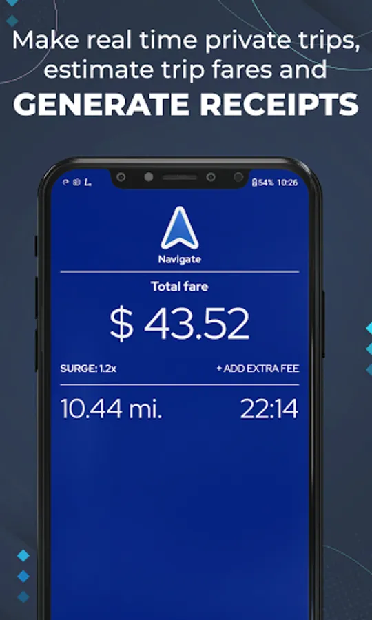 - Private Trips: calculate private trips in real time (like a taximeter). Estimate trip fare, generate receipts and send them to customers.