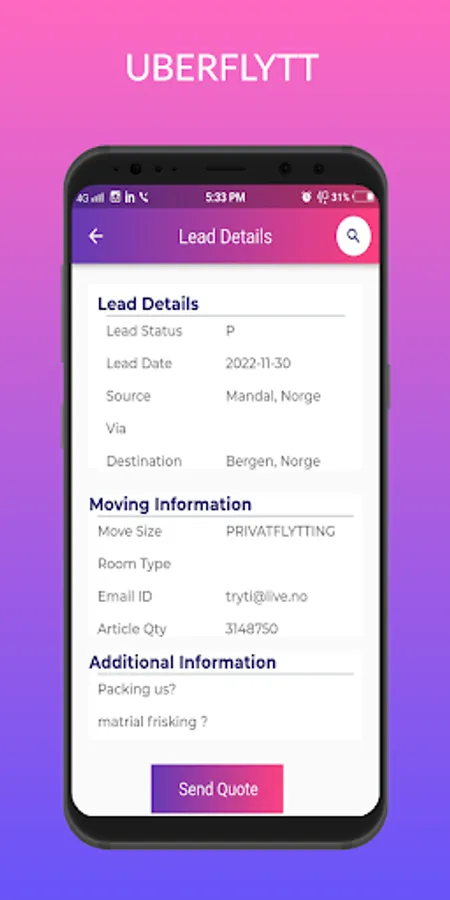 By downloading the app, you can receive daily moving requests for various moving tasks from all over Norway.