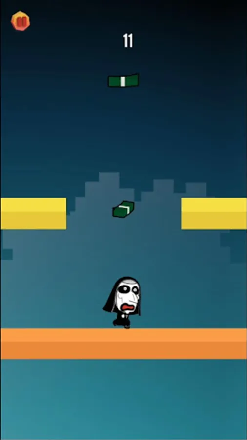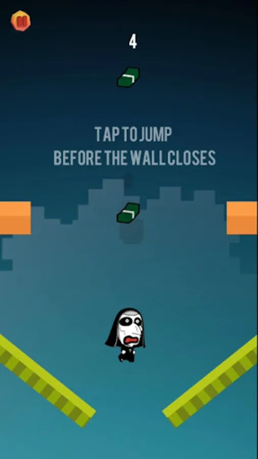 Jump right before the wall closes and collect as many $ dollars as you can!