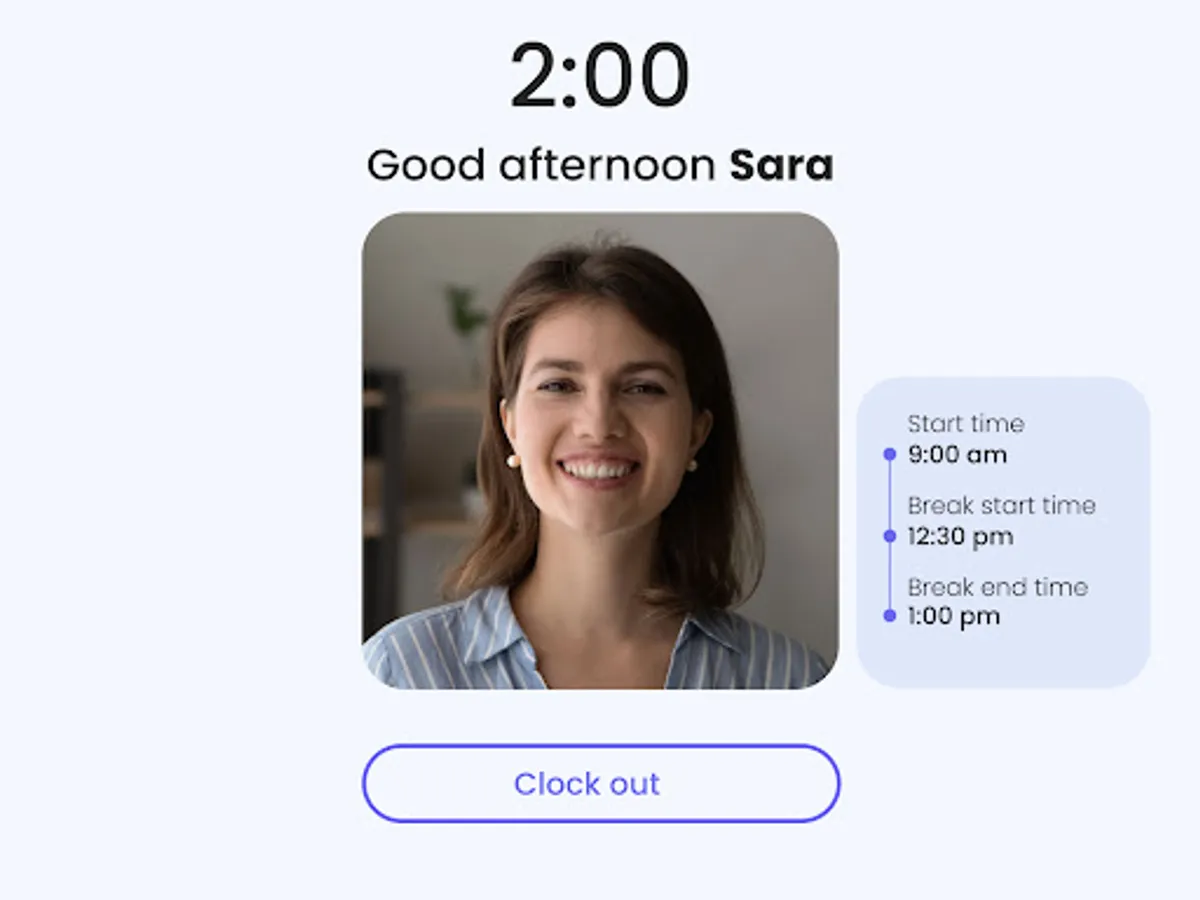 Clocks employees in with facial authentication via Ubeya Tablet. Let your employees start and end shifts faster with facial authentication.