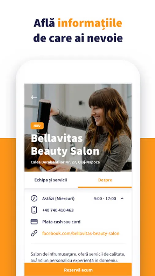 - Servicii diverse: Vezi toate serviciile fiecărui business, alegi ce îti place.