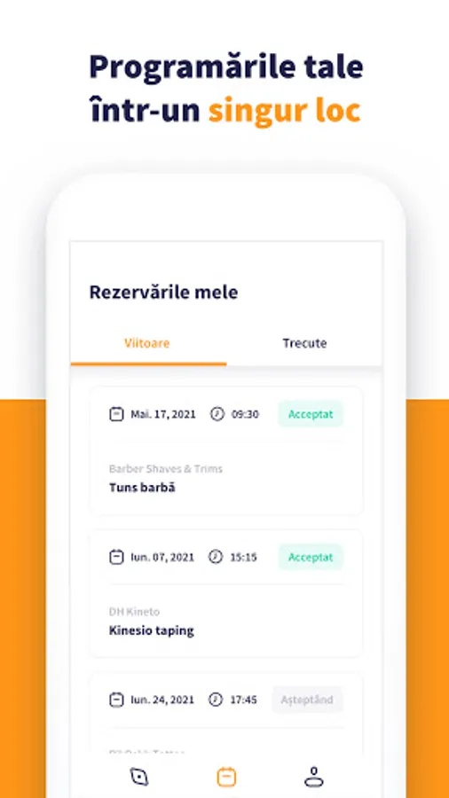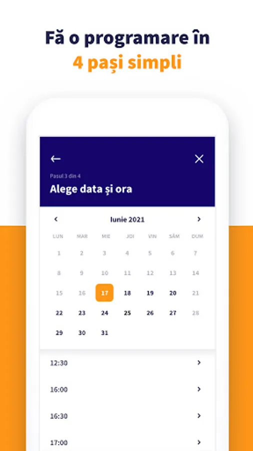 - Format calendar: Afli programul și disponibilitatea prestatorului dintr-o privire și faci o programare în 4 pași simpli, în cateva secunde.