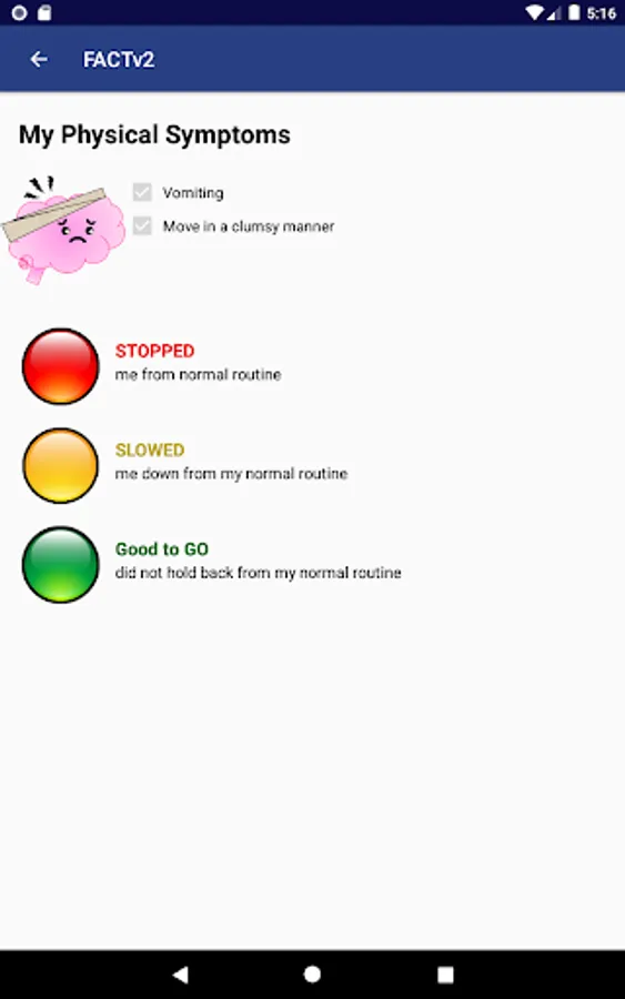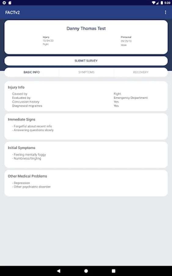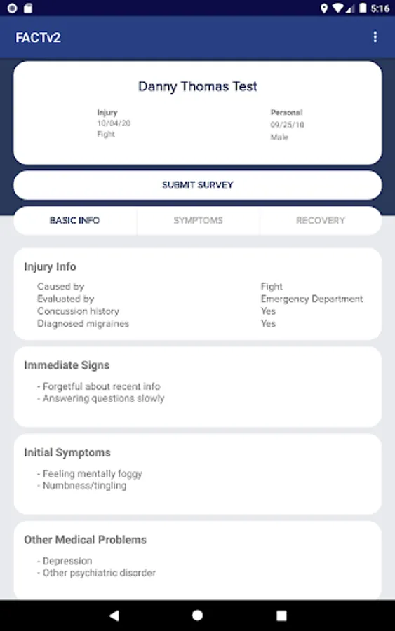 Functional Assessment of Concussion Tool (FACT) app is a valid and feasible method of assessing functional outcomes for patients with concussion symptoms. The report generated from this tool will provide concussion history.