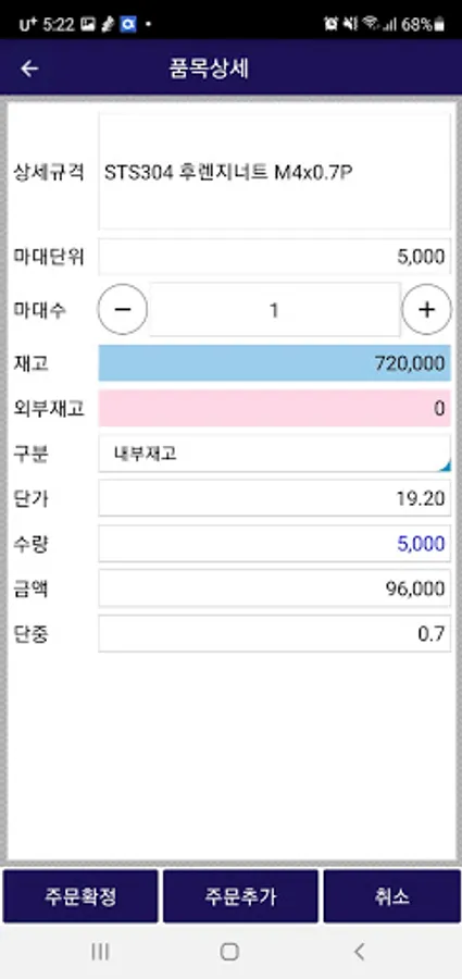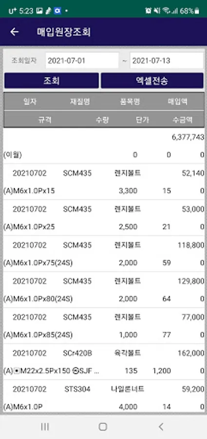 To log in, you need to be approved by the administrator, and after logging in, you can check the main menu. In the order registration menu, the order details are saved by entering shipping information, customer information, and item information. In the Order History Inquiry & Edit menu, you can search the saved order details according to the search conditions and edit the contents by selecting the searched details. In the purchase ledger inquiry menu, you can check the purchase history for the entered period, focusing on the amount, and you can create an Excel file and send it by email. In the Current Inventory Inquiry menu, you can check the stock currently in stock by selecting the item and size. Please refer to the mobile phone screenshot.