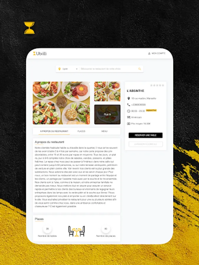 Ubiilli is a unique online reservation service that benefits from simplicity, speed and an enhanced selection of restaurants. You no longer need to waste time looking for a suitable place, everything is gathered in one service - that's Ubiilli. Do you already know which cuisine you would prefer today? Then select it from the list and the service will give you all the information you need. Even easier! You don't have time to wait at the restaurant but you want to eat properly? Book your meal in advance and be served as soon as you arrive. Do you need to find a restaurant near your home or office quickly and efficiently? Choose Ubiili and live Ubiili