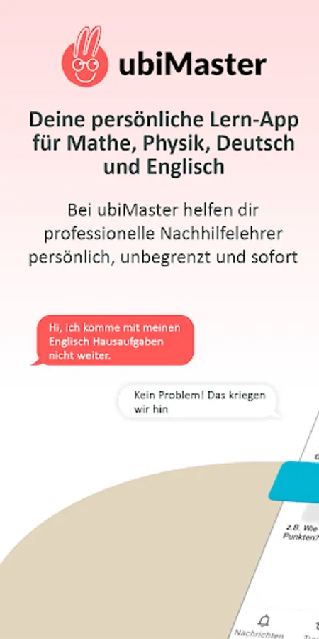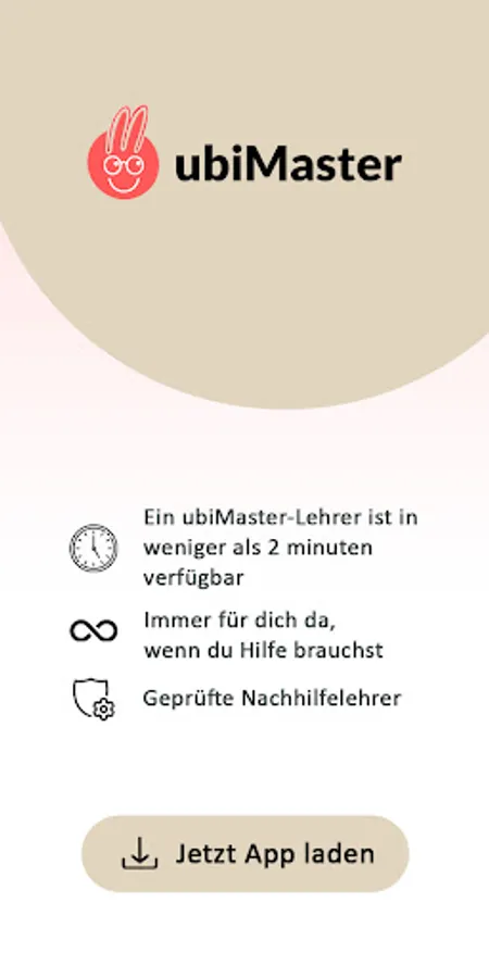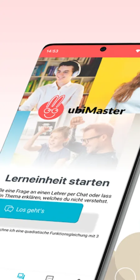 Regardless of whether you are stuck with your homework, you didn't understand something at school/vocational school, you want to prepare for an exam or you need a learning coach to improve your grades: ubiMaster is Monday to Friday from 2 p.m. to 7 p.m and Sat/Sun from 10 a.m. to 4 p.m. within a few minutes